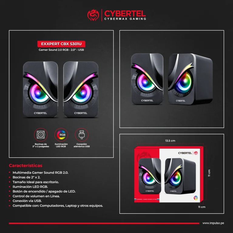 PARLANTE CYBERTEL EXXPERT CBX S301U 2.0 USB, RGB 2″