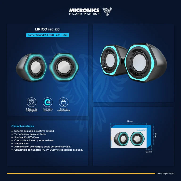 PARLANTE MICRONICS LIRICO MIX S301 2.0 LED 2″