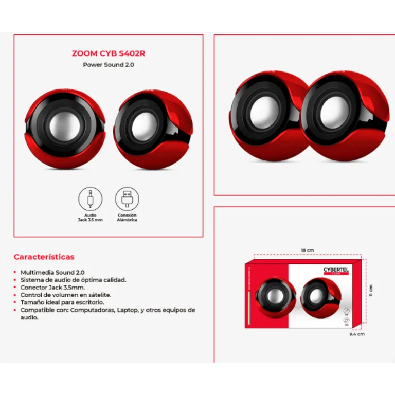 PARLANTE CYBERTEL ZOOM 2 RED CYB S402r, 2.0 USB 2″ RMS: 10W