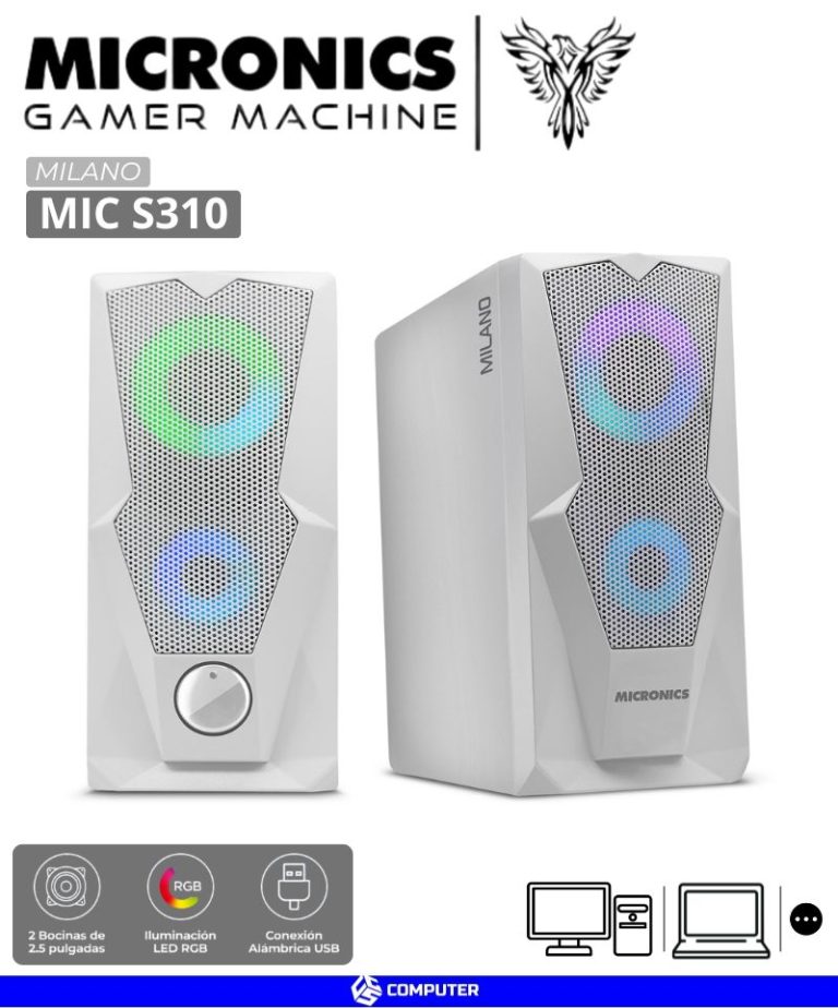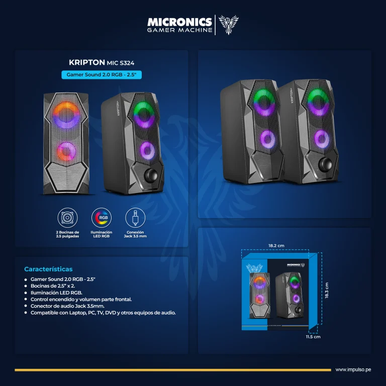 PARLANTES MICRONICS KRIPTON MIC S324 RGB, 2,5″, JACK DE 3.5mm, CONEXION USB 2.0, COLOR NEGRO
