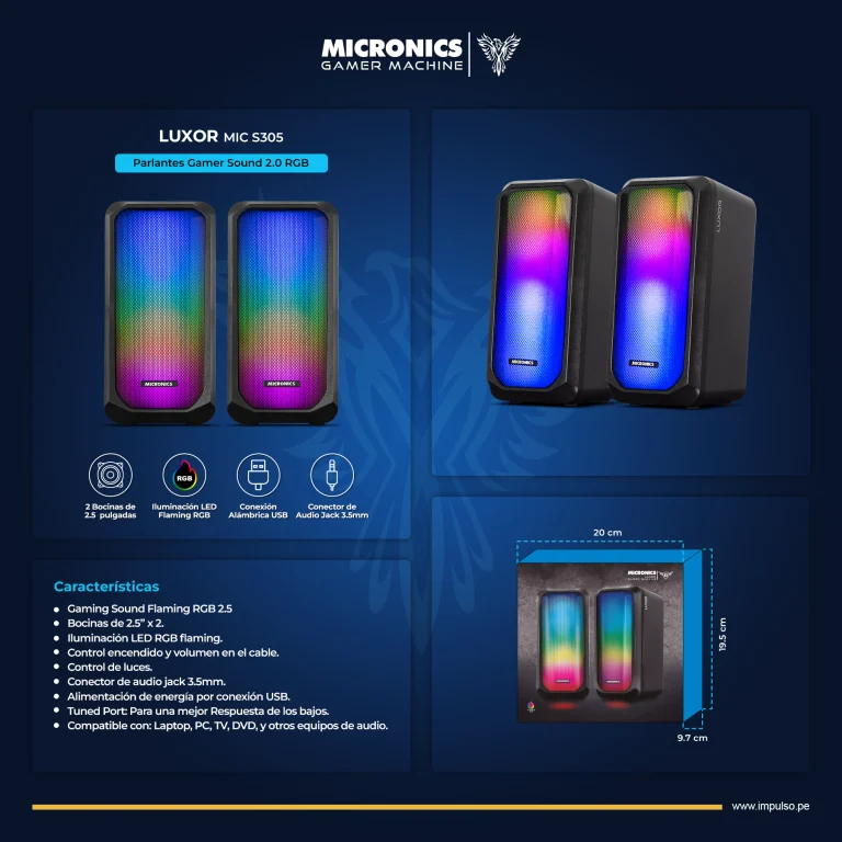 PARLANTE MICRONICS MIC S305 GAMING SOUND FLAMING RGB 2.5
