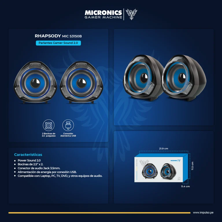 PARLANTE MICRONICS RHAPSODY BLU MIC S315b 2.0 USB 2.5″, RMS:12W