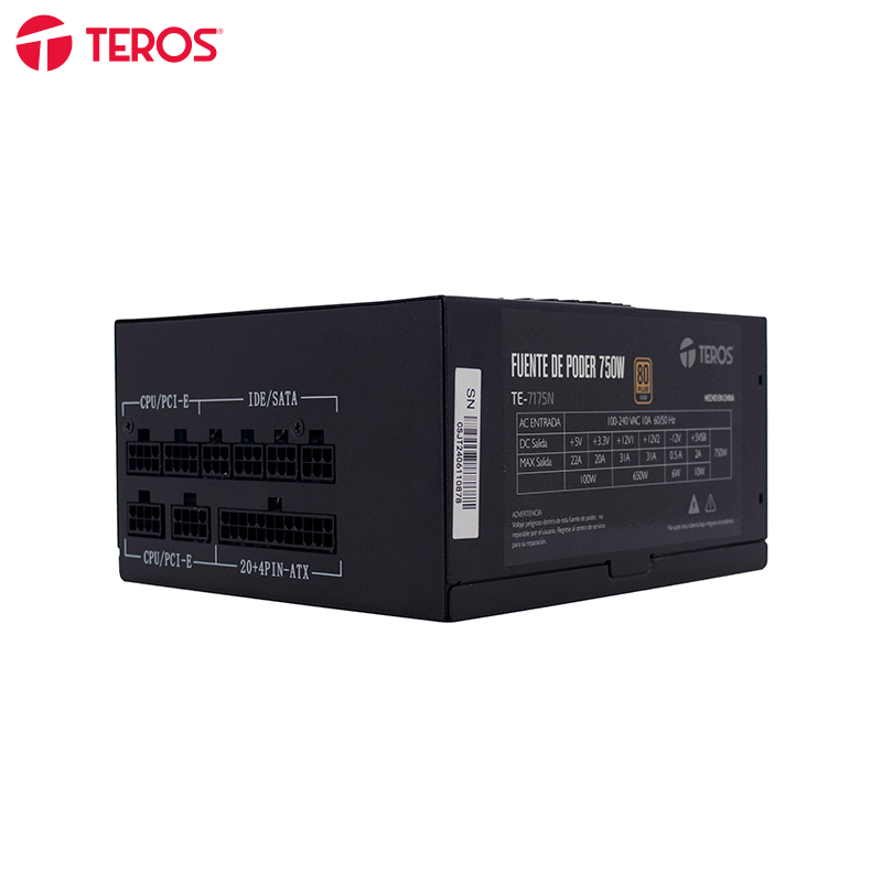FUENTE DE PODER TEROS TE-7175N ATX 750W 80 Plus Gold 100V-240VAC CERTIFICADA
