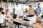 Muy buen rendimiento para oficinas con volumen medio-alto, por su capacidad de páginas y sistema de tinta grande.