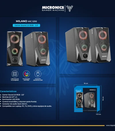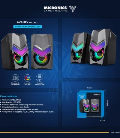 PARLANTE MICRONICS AVANTY MIC S321 2.0 RGB 2. 5