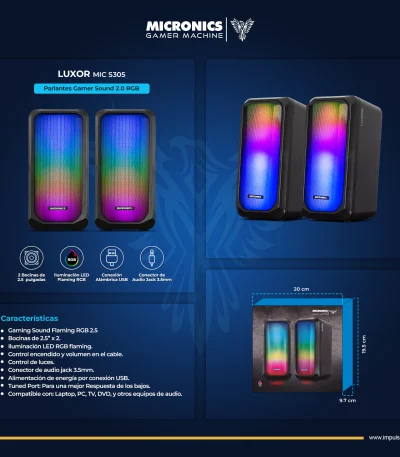 PARLANTE MICRONICS MIC S305 GAMING SOUND FLAMING RGB 2.5