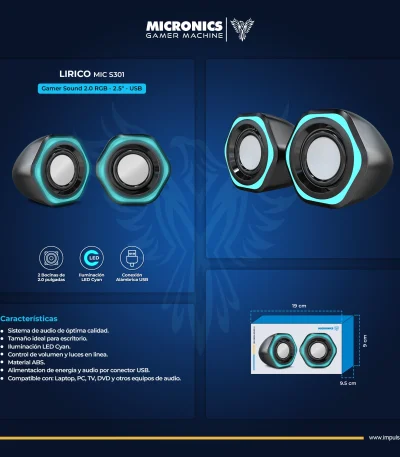 PARLANTE MICRONICS LIRICO MIX S301 2.0 LED 2″