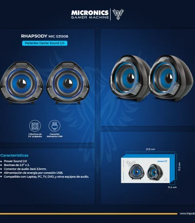 PARLANTE MICRONICS RHAPSODY BLU MIC S315b 2.0 USB 2.5″, RMS:12W