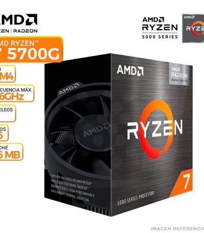PROCESADOR AMD RYZEN 7 5700G, 3.80 / 4.60GHz, 16MB L3, 8-CORE, AM4, 7NM, 65W.