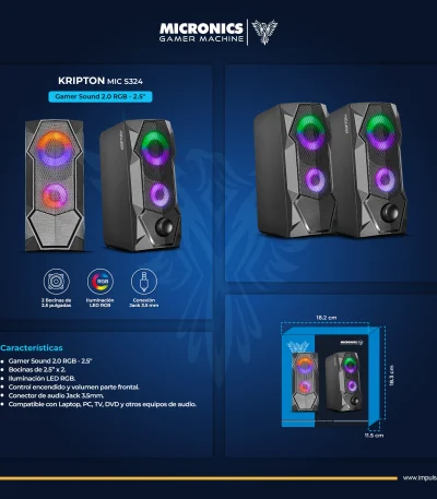 PARLANTES MICRONICS KRIPTON MIC S324 RGB, 2,5″, JACK DE 3.5mm, CONEXION USB 2.0, COLOR NEGRO